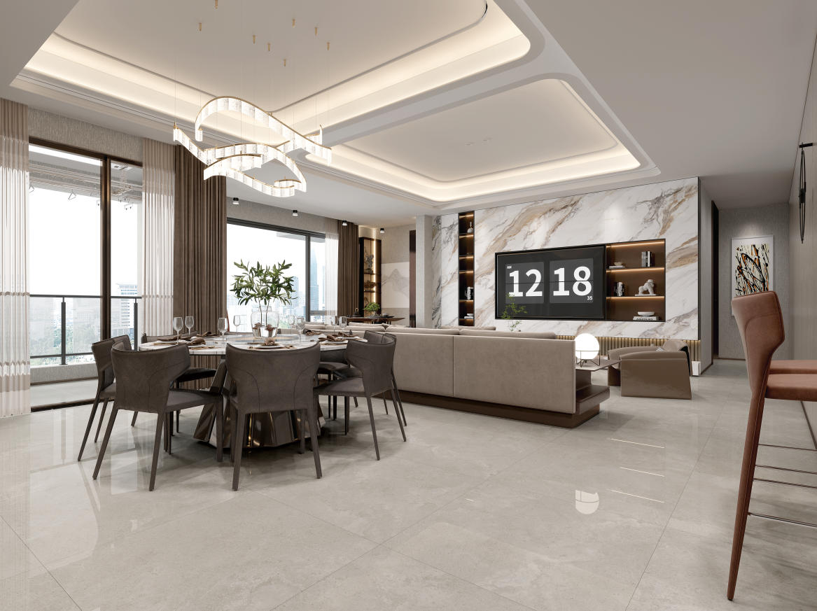 獨(dú)特時(shí)尚的米杏色調(diào),變幻莫測(cè)的漸變紋理流動(dòng),彷如歲月的雕琢,給空間帶來(lái)連貫、完整、延伸的無(wú)垠視界。