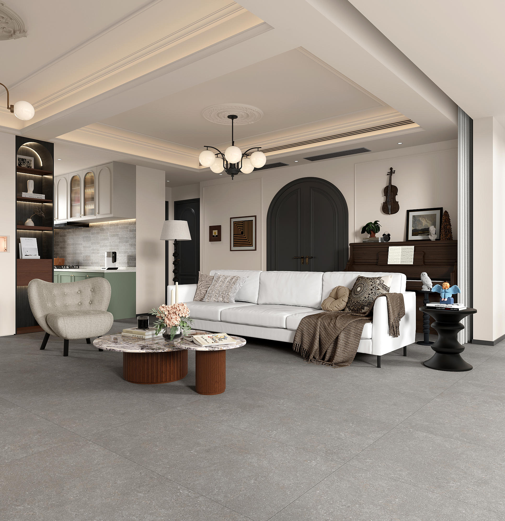 靈感源于薄霧籠罩的古老海岸。色調(diào)清冷而高級,還原了冰川期海床或風雨侵蝕后的石灰?guī)r本質(zhì)。細膩的灰調(diào)肌理帶有天然的水墨暈染感,如海霧彌漫,傳遞出永恒的寧靜與現(xiàn)代的克制美學。(薄霧海岸的永恒靜謐)